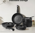 - The pots, pans and detachable handles of this cookware set are stackable, saving you valuable kitchen space. Ideal for small kitchens or for those looking to optimize their storage area.