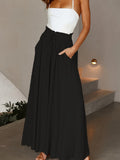 Plus Size Wide Leg Pants - Stylish Solid Paper Bag Waist Design, Elegant Pocket Tie Front, Loose Fit For Comfort, Perfect For Spring & Summer, Women's Fashionable Clothing For Curvy Figures